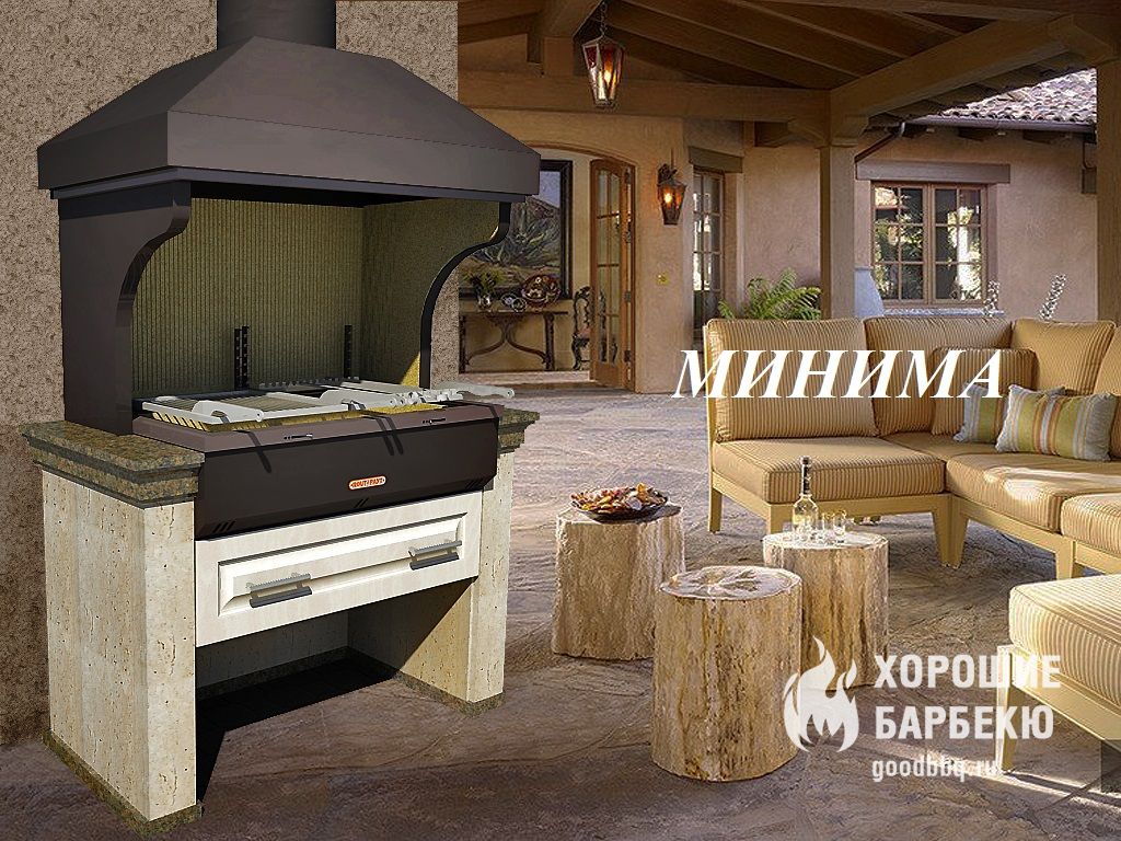 С учетом 2 типоразмеров мангала (60 и 93 см) и 4 сортов камня для отделки (белый известняк, лагунит и турецкие Травертин Классик и Травертин Ноче) получается более 70 стандартных вариантов отделки любой комплектации барбекю.